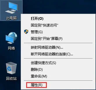 1、在“此电脑”图标上单击右键,选择“属性”;