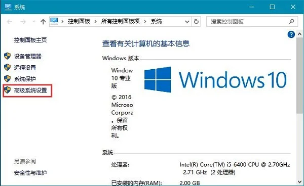 2、在左侧点击“高级系统设置”;