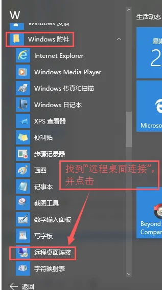 找到“windows 附件”里面的“远程桌面连接”,并打开它