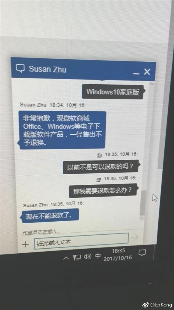 有这么一类人,不论多好的用户政策、福利,他们总能轻而易举地给彻底玩坏,从此告别美好的一切。不久前,微博数码博主@EpKong就爆料道,由于“一部分人”利用Windows退款政策购买大量正版激活后退款,导致微软官方商城对政策进行了调整(就是,取消了)。