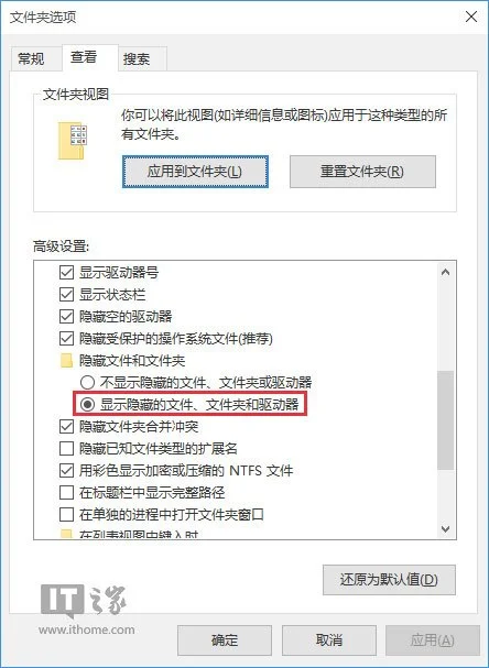 需要注意的是,想要进入上述AppData文件夹,需要显示隐藏文件,你可以在文件资源管理器的“查看”标签页中,找到“选项”,然后在文件夹选项的“查看”选项卡中选择“显示隐藏的文件、文件夹和驱动器”。