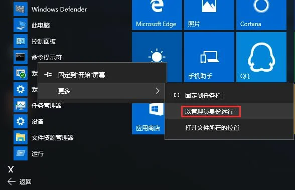 在windows 系统下面找到命令提示符,在命令提示符上单击右键,选择【更多】-【以管理员身份运行】即可!