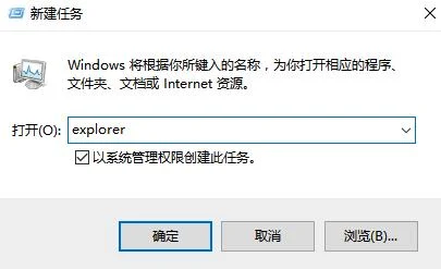 3、在新建任务上勾选 以系统管理权限创建此任务,然后 输入 explorer 点击确定;