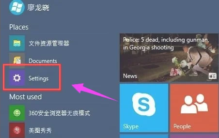 打开【开始菜单】进入【Settings】