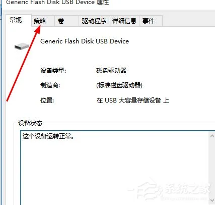 3、在打开的属性界面选择菜单栏中的策略选项 如图所示。