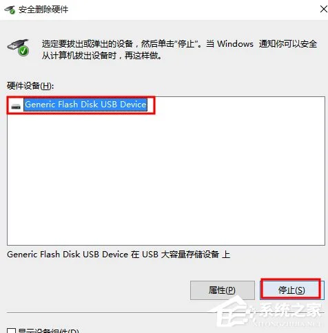 6、此时打开安全删除硬件界面 如图所示 点击停止按钮即可。