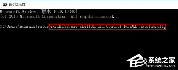 5、另一个方法 运行输入框输入cmd打开dos界面 输入以下命令:rundll32.exe shell32.dll,Control_RunDLL hotplug.dll 然后单击回车执行命令。
