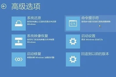2、看到高级选项界面 点击高级选项–》疑难解答–》高级选项–》命令提示符。