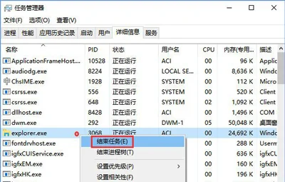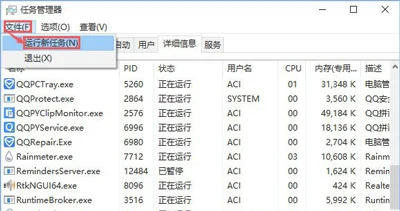 2、也可以打开任务管理器,看到进程里面有个explorer.exe的运行程序。单击右键结束运行,这个时候你会发现,你的桌面什么也没有了,不要担心,在windows任务管理器的左上角有一个文件打开有个新建任务,打开如下图,在里面输入explorer.exe然后点确定,你会发现你的桌面有回来了,因为这个程序桌面占用你很多内存,关闭先释放一下,再打开,不会出现问题。