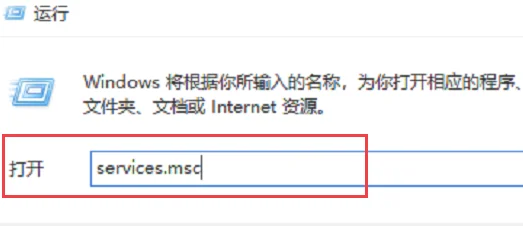 1.按win+R键打开运行,输入“services.msc”,点击确定