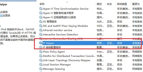 4.我们在系统服务列表中找到“IP Helper”服务,双击进去