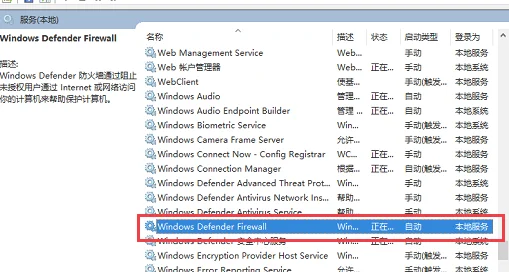 6.找到“Windows Defender Firewall”服务,启动类型设置为禁用