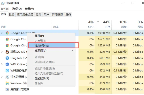 3、如果是老是在运行同一款软件出现卡死的情况,可以直接结束任务。