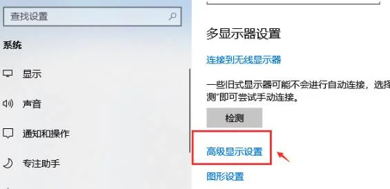 5、在高级显示设置中点击“显示器的显示适配器属性”。