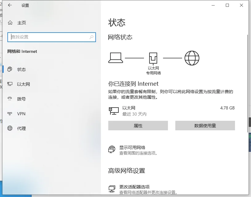 3、查看网络连接方式,如果是宽带拨号,那么点击拨号,如果是以太网的也同样点击拨号,然后再点击宽带连接的高级选项。