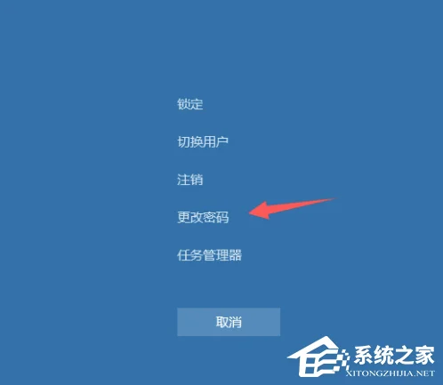 1、首先需要先设置开机/登陆密码,按下键盘Ctrl+Alt+Del键,出现的界面选择【更改密码】。