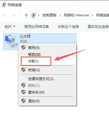 第二步:右击以太网,选择诊断。