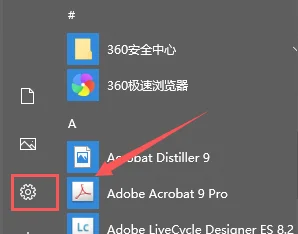 2、在开始菜单点击左侧边栏的设置,如下图所示