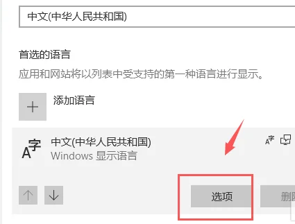 6、在中文弹出选项中点击选项按钮,如下图所示