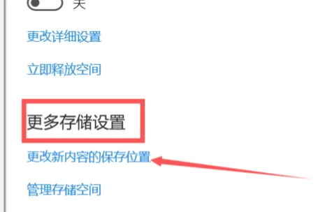 4、找到更多详细设置,点击下面的”更多新内容的保存位置“