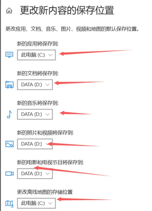 5、这里软件,文档,游戏,图片等都可以设置到相应的盘符