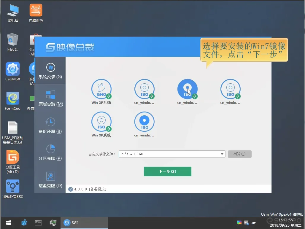 4、进入到pe系统后,打开小白工具,选择安装的系统,安装完成后重启即可。
