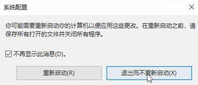 1.“Win+R”输入:msconfig ,修改了系统配置后,点击确定后。系统提示“重新启动”和“退出而不重新启动” 勾选了不提示,如何再次恢复这个提示窗口,