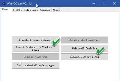 国内不少用户使用国产杀毒软件或国产网盘,这样Windows自带的Windows Defender和OneDrive就显得多余。为此,可分别点击Disable Windows Defender和Uninstall OneDrive按钮,将这两个组件卸掉(图1)。