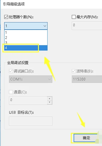 5、在高级选项卡界面勾选CPU最大数