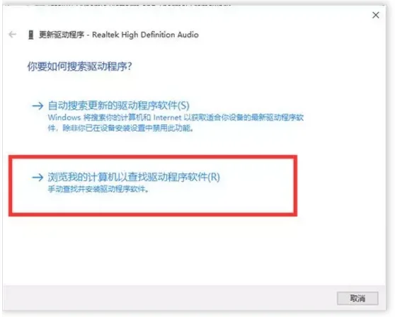 6.选择【浏览计算机以查找驱动程序软件(R)】