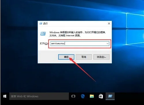 1、打开Win10电脑,按【win+R】快捷键,打开运行窗口,输入services.msc,点击确定,如图所示: