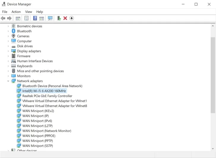 要确定驱动程序更新是否可用于你的设备,需要打开设备管理器,展开网络适配器的分支,并查找英特尔适配器型号。