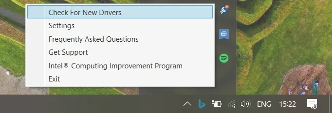 4、在系统托盘或通知区域中,单击英特尔的工具图标。