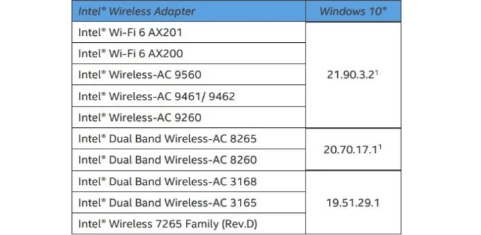 预计英特尔将在今年晚些时候针对较旧的无线适配器发布另一个更新。