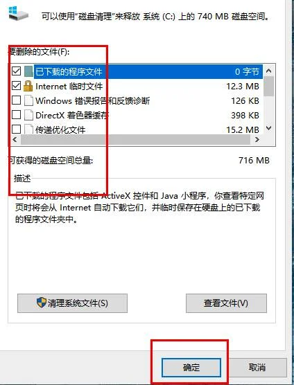 3、勾选垃圾文件,点击“确定”即可清理成功