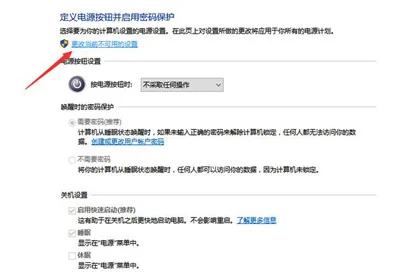 1、打开控制面板中的电源选项,点击“选择电源按钮功能”,在弹出的界面中就能看到快速启动功能,不过这时是灰色的不可操作,这时点击上方的“更改当前不可用设置”,如图所示: