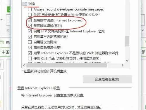 6。在“高级”按钮中找到“禁用脚本调试”。