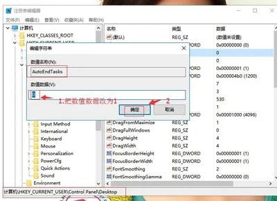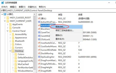 Win10系统关机时提示程序仍在运行无法关机怎么办?Win10系统关机提示程序还在运行该如何解决?电脑知识网为大家解答。 操作步骤: 1、在win10系统桌面上,开始菜单。右键,运行。如下图 2、输入regedit,再确定。如下图 3、在注册表编辑器中展开定位HKEY_CURRENT_USERControl PanelDesktop。在右侧找到AutoEndTasks。如下图 4、右键,修改。如下图 5、把数值数据改为1。再确定。如下图