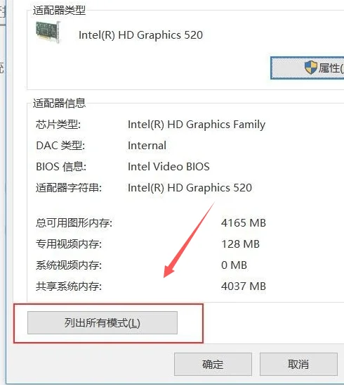 第二步:在弹出的窗口中,选择“适配器”目录下“列出所有模式”。