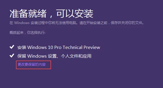6.将“保留windows设置,个人文件和应用”改成“不保留任何内容”,即将C盘全部重置。