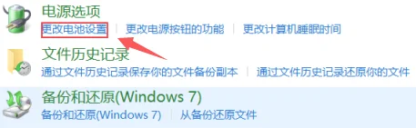 2、在控制面板界面中,点击电源选项下方的“更改电池设置”。