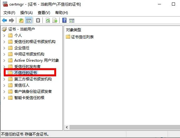 3、在弹出的新窗口中点击“不信任的证书”。