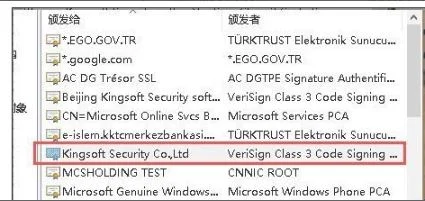 4、将“KingsoftSecurityCo.,Ltd”从列表中删除即可。
