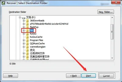 4、之后选择修复后的文件将要存储的文件路径,点击开始。