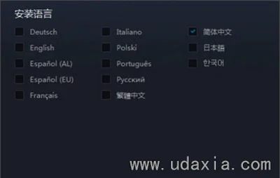 5、看到简体中文,点击可以出现很多语言选项,选择你想要添加的语音包,系统就会自动开始下载了。