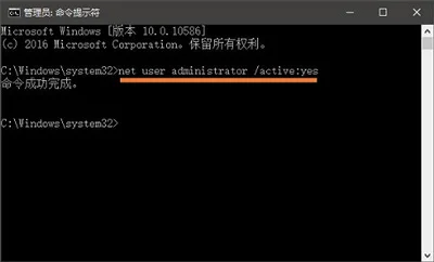 5、在命令提示符中输入:net user administrator /active:yes 按下回车键即可;
