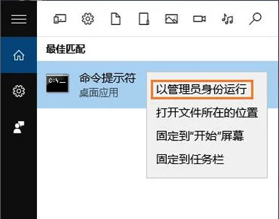 4、进入系统后,我们点击左下角的Cortana搜索按钮,搜索cmd,出现命令提示符,并右键【以管理员身份运行】;