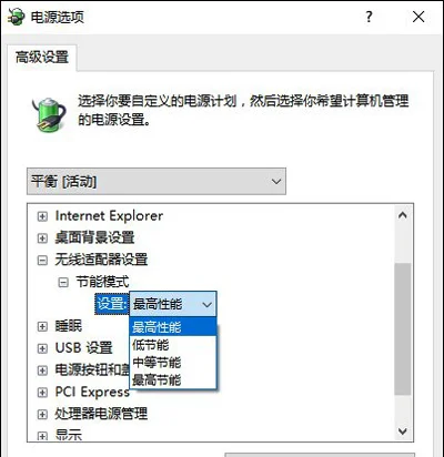 将无线适配器的模式设置为“最高性能”