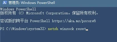 4、输入netsh winsock reset按下回车。