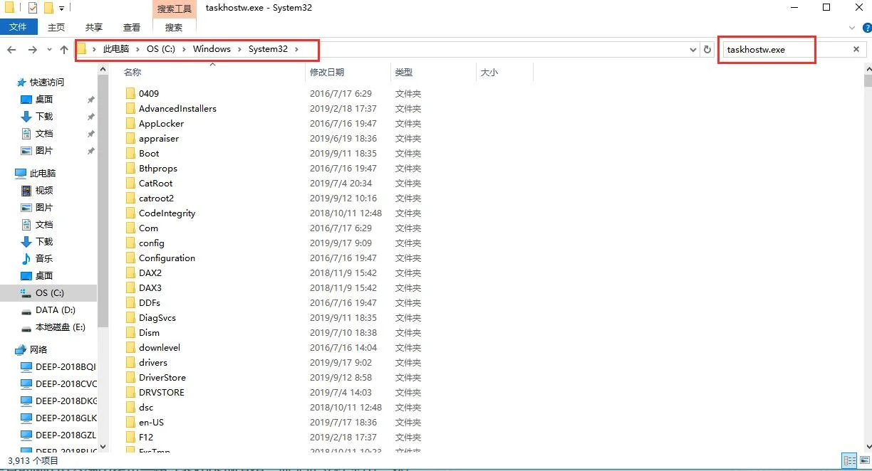 1、双击打开词电脑,然后依次进入C:WindowsSystem32中,然后在右侧搜索【taskhostw.exe】